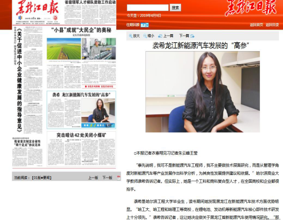 4月8日,《黑龙江日报》头版以“龙江新能源汽车发展的‘高参’”为题,报道了我校教师袭希7年如一日,扎根龙江,致力于新能源汽车产业发展研究的先进事迹。