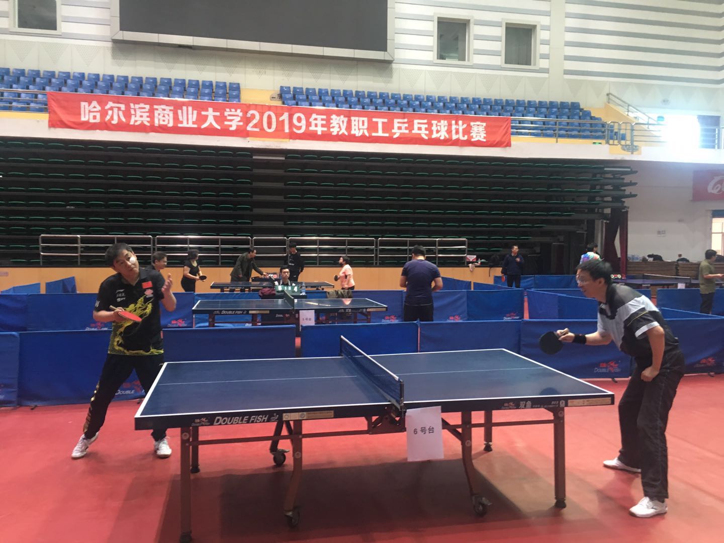 经过1天紧张激烈的角逐,2019年学校教职工乒乓球比赛于4月21日在A区体育馆圆满结束。本次比赛有男女共15支代表队70余人参赛,比赛设立了男子团体、女子团体、男子单打、女子单打和混双五个项目。此次比赛,丰富了教职工的业余文化生活,充分展示了我校教职工积极、健康、向上的精神风貌,增强了教职工的集体荣誉感和团队协作精神。本次比赛得到了校工会和体育学院的大力支持,比赛具体成绩如下: