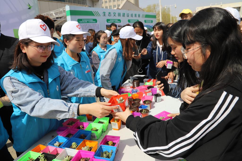 哈尔滨商业大学绿植领养公益活动从2013年开展至今,已经举办7年。今年,商大志愿者们还依托学校与中共太阳岛街工委党建共建合作平台,走进社区,面向社区居民开展了绿植领养公益活动,将生态环境保护理念送进千家万户。在今年绿植领养公益活动进行中,有很多学生们带着前几年领养的绿植来到活动现场,他们手捧着精心培育的“作品”,与新的“绿植小主人”们交流经验。各式各样绿植的特写、学生亲吻绿植的照片、师生手捧绿植的合影,还有“绿色”、“环保”、“生态文明”、“美丽中国”这些关键词,瞬间刷爆了哈商大师生的朋友圈,无论在哪里,点开手机便能感受到商大校园的一片春意盎然。