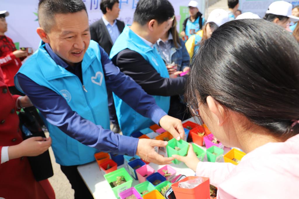 一颗颗种子是一个个顽强的小生命,是一个个悦动的灵魂,是一张张即将绽放的笑颜,也是一份份绿色的希望。这些种子里有可爱饱满的多肉、暗香盈袖的栀子花、向阳而生的向日葵、淡雅清香的茉莉等等,共计二十个品种供同学们任意选择。无论是充满文艺范的“小清新”,还是可爱卖萌的“小萝莉”,亦或是狂野奔放的“小倔强”,甚至是不修边幅的“小随意”,每一位参与活动的同学都能够选择到自己中意的绿植。尤其是能够领养到由学校领导亲自发放的绿植,同学们的脸上洋溢着无比的激动和喜悦,心头涌动着美好的幸福和希望,纷纷表示手中的小小绿植更具不同意义,是对大学生活的纪念,是对师长和学校的感恩,也是对绿色环保理念的坚守。