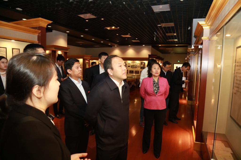 在校党委书记孙先民和校长郑秋鹛的陪同下,孙喆一行参观了我校经管综合实践中心、校史馆、哈尔滨商业票证馆、货币金融博物馆,了解学校历史和办学情况。在经管综合实践中心,孙喆一行观摩了正在进行的公司创建与运营课程体系教学;在校史馆听取药学院、食品工程学院、管理学院的科研方向和研究成果的汇报时,孙喆对研究成果是否投入生产、科研成果的转化、产学研相结合等相关问题与研发团队进行了深入交流和探讨。