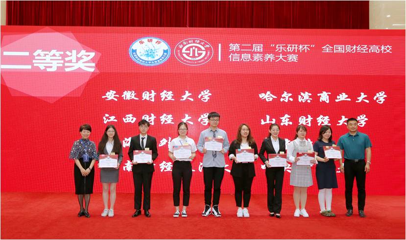 2019年5月17至18日,由教育部高等学校图书情报工作指导委员会指导,中国高教学会高等教育财经分会主办,西南财经大学承办的第二届“乐研杯”全国财经高校大学生信息素养大赛全国总决赛在西南财经大学隆重举行。参赛队伍来自全国40所财经类高校,经过多轮紧张激烈的角逐,我校英才学院2016级金融学专业李庚、张鑫阳、史赵捷三名同学组成的参赛队表现出色,获得总决赛二等奖的优异成绩,我校图书馆荣获优秀组织奖,王鑫、赵岚两位老师获得优秀指导教师奖。
