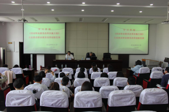 5月30日,河北省职业教育研究所原所长、河北师范大学职业技术学院原院长、二级教授,中国职教学会科研工作委员会副主任、学术委员会秘书长,教育部全国职业院校教师培训专家工作组副组长,教育部全国教育专业学位研究生教指委委员刁哲军教授应我校职业技术教育学院邀请,为河南、河北省国家级培训班作《国家职业教育改革实施方案》专题报告。