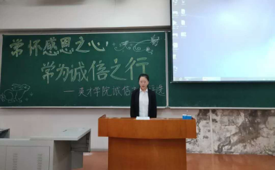 计算机与信息工程学院、药学院、外语学院等12个学院开展诚信主题团建活动,通过组织观看诚信主题宣传片、开展诚信教育讲座、编排诚信情景剧、举办诚信知识竞赛、齐唱《诚信歌》等活动,宣讲电信诈骗、非法“校园贷”、非法传销等典型案例的防范对策,激励引导青年学生养成诚信考试、诚信还贷、诚信就业、诚信网络等体现大学生文明诚信素养的良好行为。