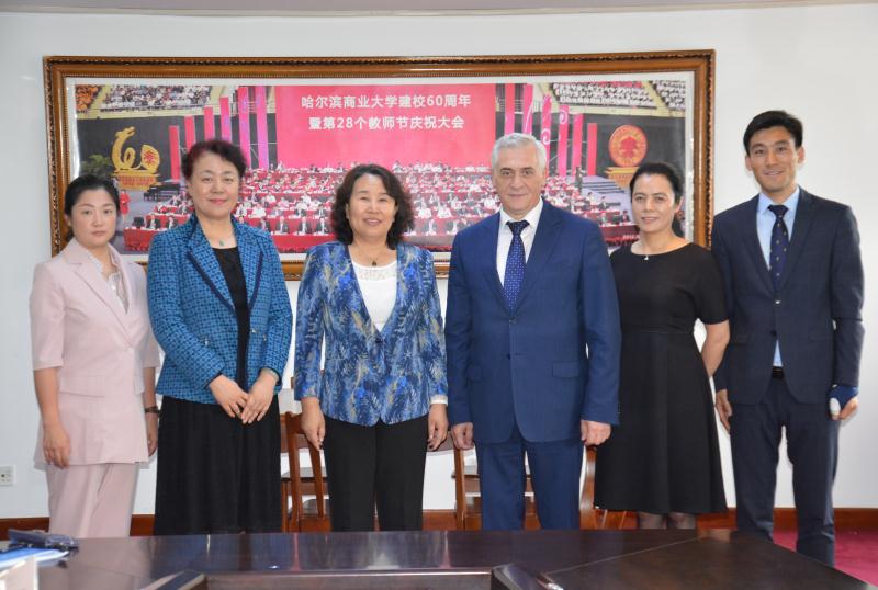 郑秋鹛首先对西林·雅科夫校长的到访表示热烈欢迎,并简要介绍了学校发展概况。她指出,哈尔滨商业大学与乌拉尔国立经济大学始终保持着良好的合作关系,西林·雅科夫校长一直以来对两校合作给予大力支持与关注,使两校合作取得了良好的成果。两校在学科专业上具有高度的相似性,尤其是在食品工程专业方面,俄罗斯的很多技术值得中国学习,双方拥有巨大的合作潜力。哈尔滨商业大学正在建设“主粮加工与特用食品工程技术研究中心”,建成后将为黑龙江省食品加工业发展提供技术支撑,希望能与乌拉尔国立经济大学在此方面开展更加深入的务实合作,共同推进东北亚合作发展研究,同时欢迎乌拉尔国立经济大学留学生到我校交流和学习。