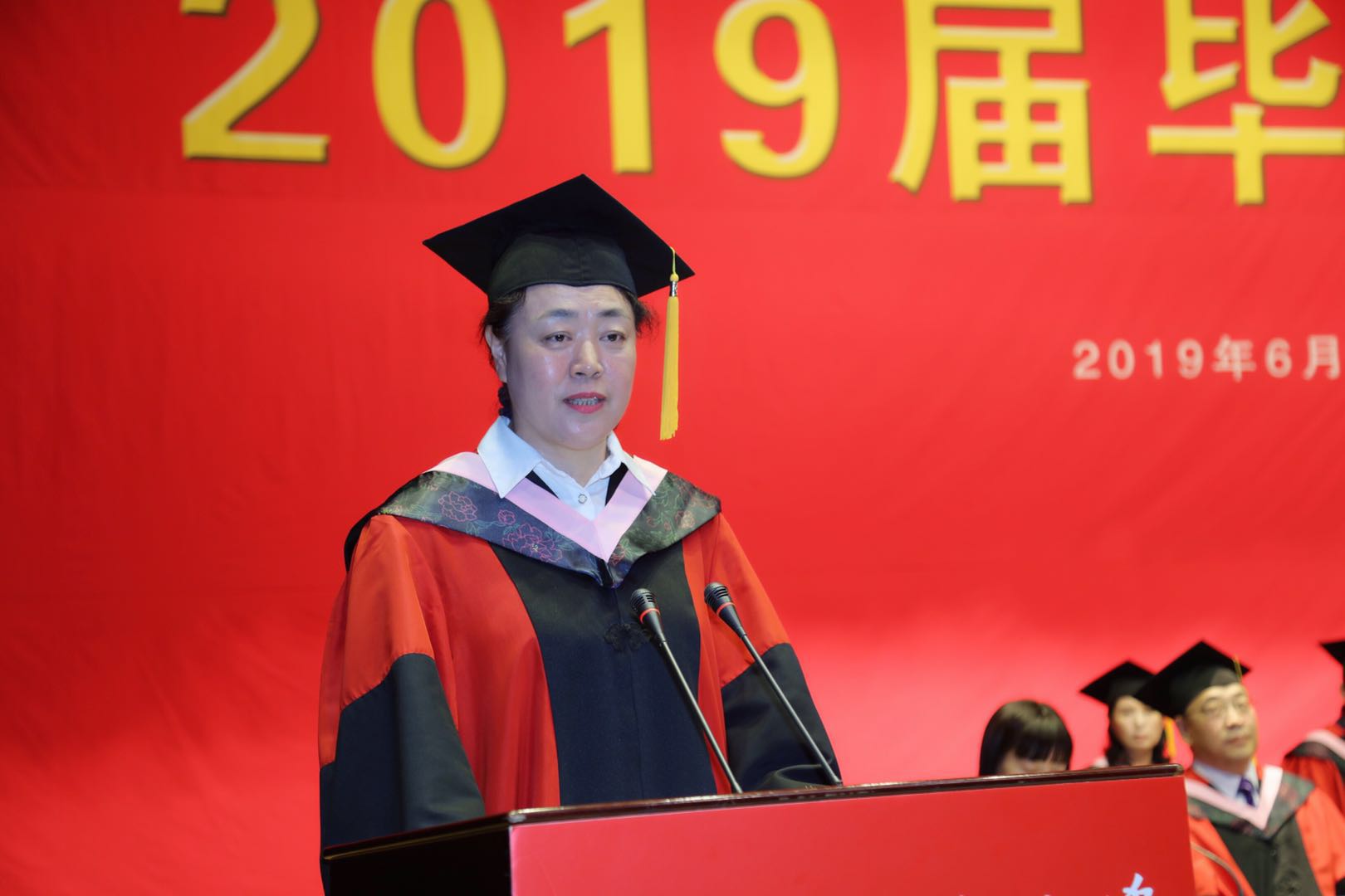 6月22日上午,我校2019届毕业典礼在B区礼堂举行。校领导,校学位评定委员会委员,各学院书记、院长、副书记、辅导员,教师代表,毕业生,在校生代表及毕业生亲属代表等齐聚一堂,温情送别2019届毕业生。副校长张林教授主持毕业典礼。
