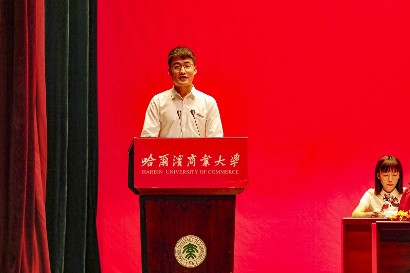 在校生代表、英才学院2016级杨宇鹏代表全体在校生向即将离开母校的学长学姐们表达最衷心的祝愿,祝愿他们带着学术的智慧、新途的理想、生活的热忱踏上新的征程,开启人生新的篇章。商大学子将秉承“求真至善,修德允能”的校训,不忘初心,牢记使命,让奋斗成为青春最亮丽的底色,在新时代的拼搏奋斗中绽放属于自己的芳华。