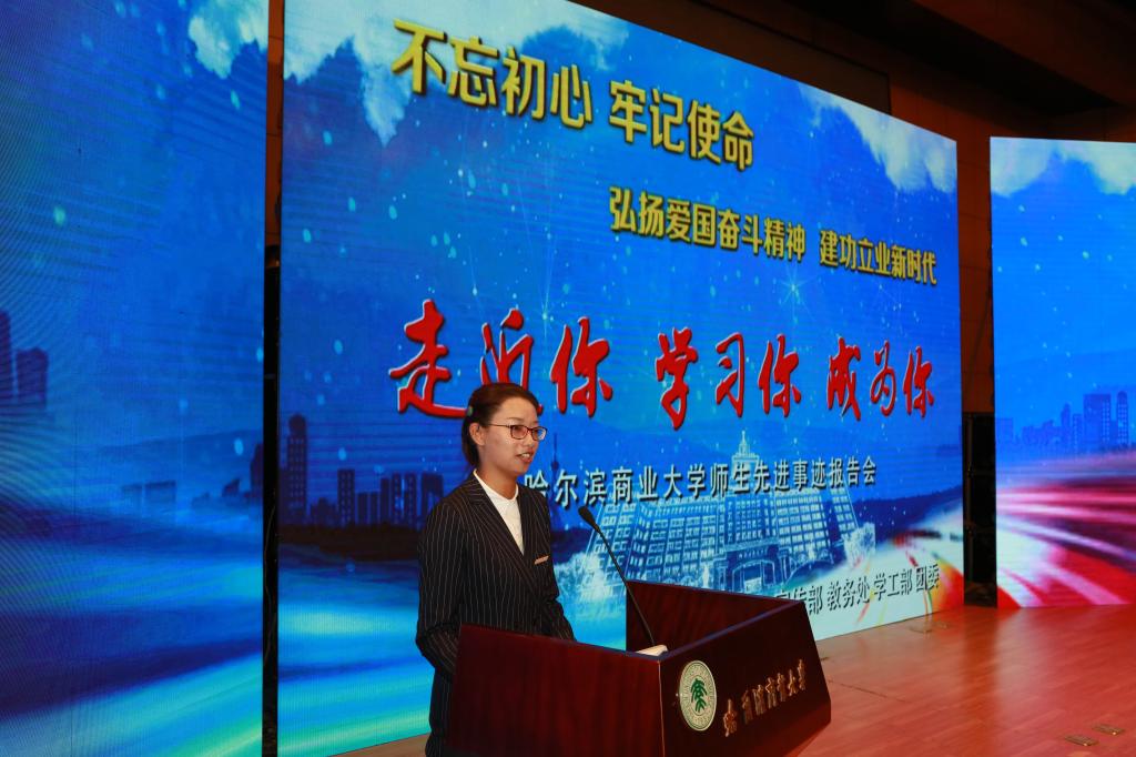 报告人都是我校师生中的先进典型,不仅有扎根龙江、潜心科研的领军人物——我校食品添加剂生物催化制造创新团队带头人辛嘉英教授,也有聚力扶贫、情暖一方的扶贫团队——哈尔滨商业大学驻齐齐哈尔市依安县新发乡福来村扶贫工作队;既有兴贤育德、责在师儒的省级教学名师——会计学院院长张劲松教授,也有坚定信念、砥砺前行的“双带头人”——马克思主义学院原理概论教研室联合党支部书记、毛泽东思想和中国特色社会主义理论体系概论教研室主任、2018年教育部新时代高校党建工作样板支部书记陈江波,还有奋发向上、永不言弃的自强之星——金融学院2015级金融工程1班学生曲红玉。他们默默耕耘、无私奉献,成为商大人的榜样。