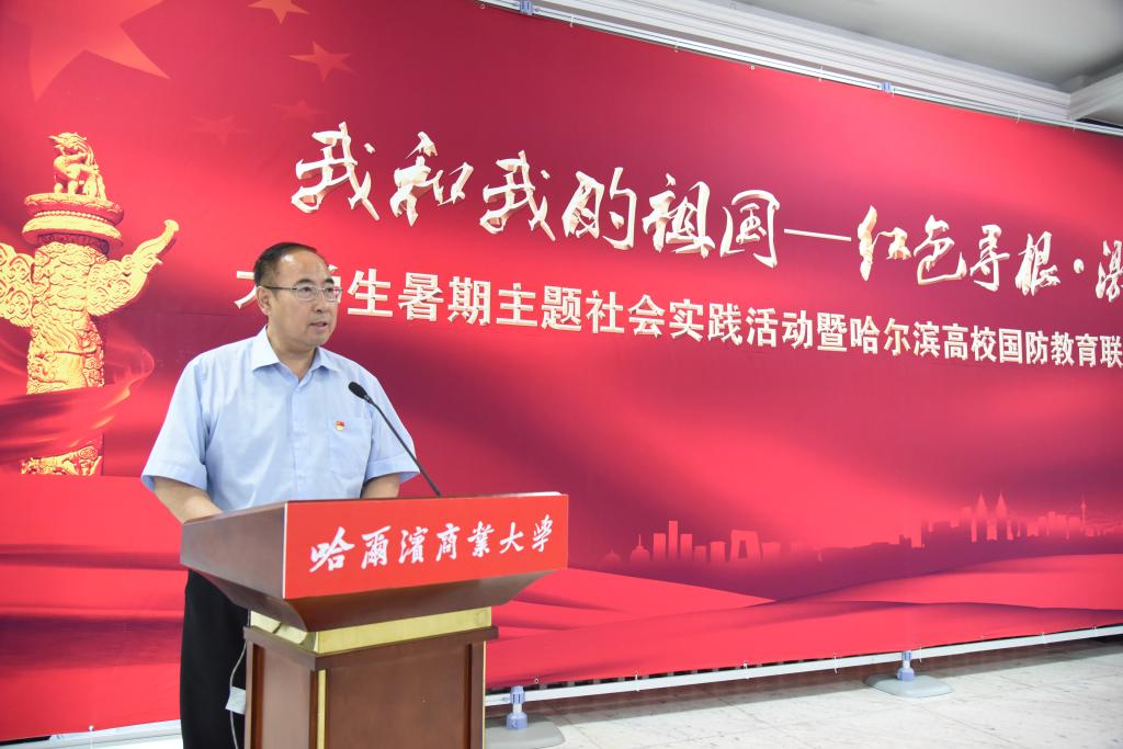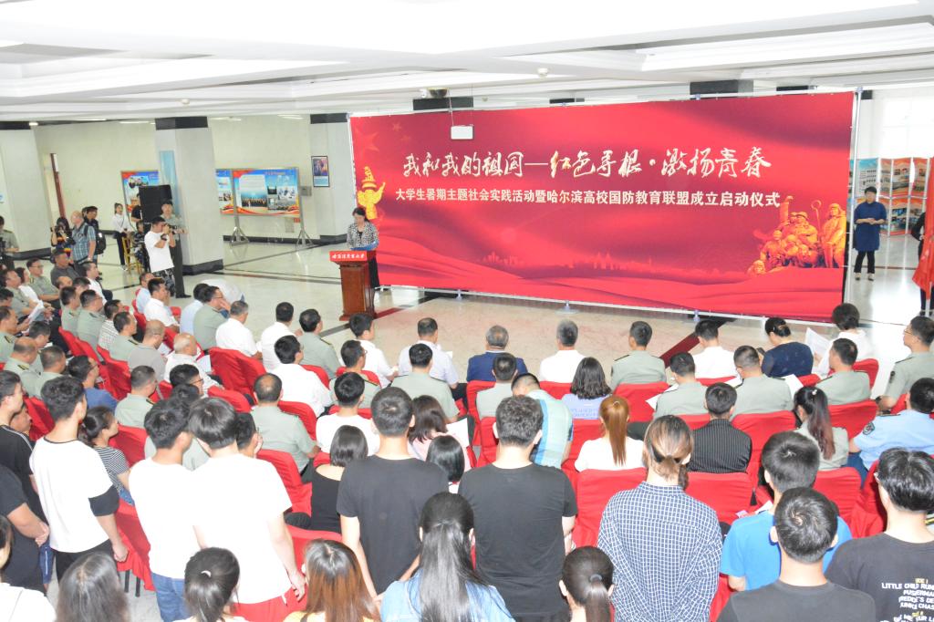 党委书记孙先民在致辞中指出,在全国上下热烈庆祝新中国成立70周年、中国共产党成立98周年及全面开展“不忘初心、牢记使命”主题教育之际,在哈高校开展以“我和我的祖国——红色寻根·激扬青春”为主题的大学生暑期主题社会实践活动及成立哈尔滨高校国防教育联盟具有特殊意义,对于弘扬革命精神、传承红色基因、深化爱国主义教育具有重要价值。