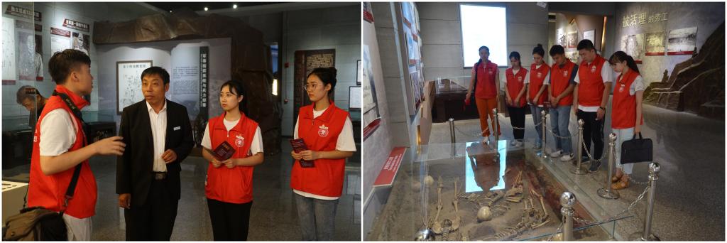 走进东宁要塞群遗址博物馆,一张张泛黄的图片、一件件史实性证物,无声地述说着那段不堪回首的悲情岁月,给成员们以强烈的视觉冲击和心灵震撼,17万劳工受尽屈辱的血泪史真切地浮现在成员们的脑海里。据讲解员介绍,日本关东军为了保守阵地秘密,征用的17万中国劳工只有极少生还,绝大多数都被残害致死集中埋葬,共有十余处劳工坟分布在东宁的山岗上,有的劳工坟内掩埋着多达8000余名劳工的尸骨。