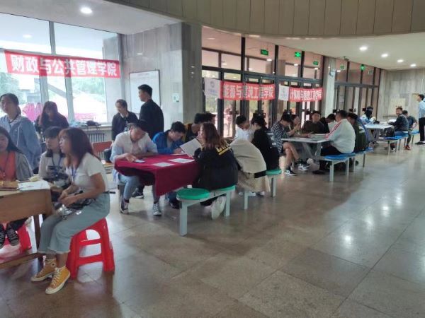 我校此次专升本迎新现场全部设在江北校区,由于新生报到期间正值雨天,学校启动了临时迎新预案,将迎新场地改至B04基础科学学院一楼大厅内。志愿者在原场地设置了服务台引导新生到大厅内办理入学手续,整个迎新过程井然有序。