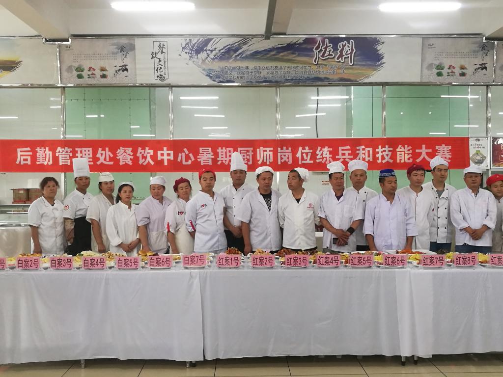按照“标准严格、管理精细、服务优质”后勤工作要求,践行服务育人,提高饮食服务水平和饭菜质量,8月17日下午,后勤管理处餐饮中心在A区食堂举办厨师岗位练兵和技能比赛。餐饮中心基本大伙(包含民族餐厅)的红案、白案共19名厨师参加了厨艺比赛。