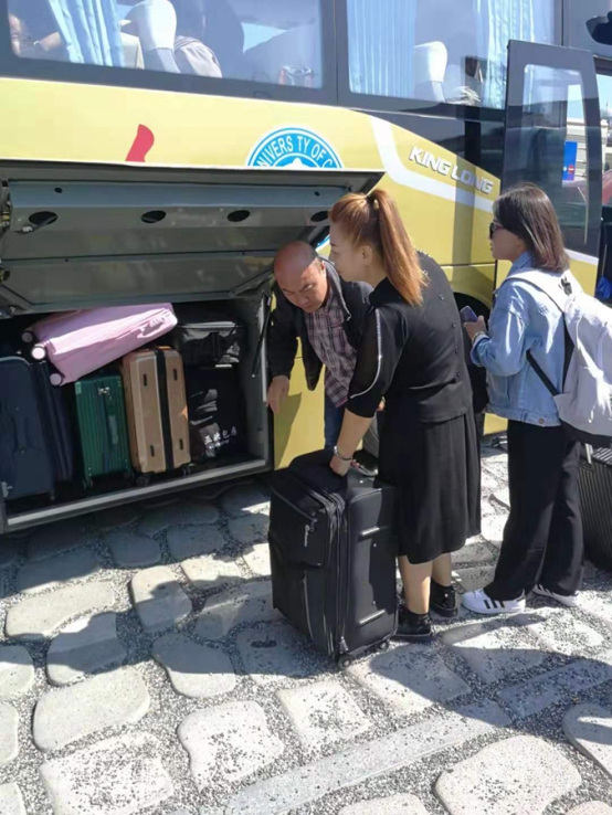 接站是迎新的一项重要任务。运输中心提早做好了校内10辆通勤车和公务车的安全检修及卫生清洁,对司机进行安全教育,规范服务用语,为迎接新生及家长的到来做了充分的准备。迎新期间,10辆大客车从早上7点到晚上10点,1个小时左右往返学校与哈站、哈西站之间,不间断循环接送新生及家长。我们的司机师傅从学生的手中接过行李箱,在车箱内摆放整齐,并安排好学生及家长落座,服务热情周到,他们每天工作至深夜,困了累了却没有一个人叫苦。校长郑秋鹛到接站现场慰问接站的工作人员,更加鼓舞了司机的士气,他们用细致入微的服务把每一名学生和家长安全送达学校报到地点。