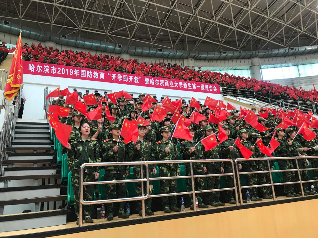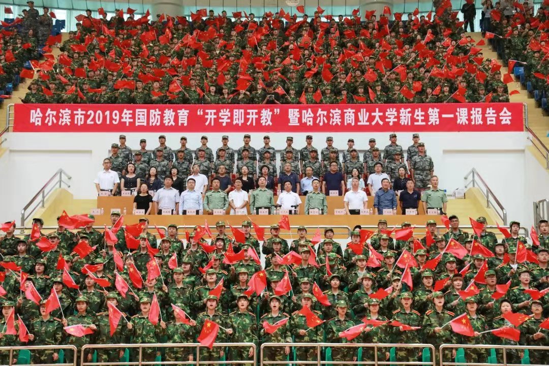 “青春告白祖国”活动前,我校举办了哈尔滨市2019年国防教育“开学即开教”暨哈尔滨商业大学军训第一课报告会,用“爱国”开启了2019级新生国防教育第一课。哈尔滨市委常委、哈尔滨警备区党委书记、政治委员韩玉平同志做了题为《走进龙江历史 投身复兴伟业》的精彩报告,我校党委书记孙先民主持报告会。报告会内容丰富,内涵深刻,描述了顽强抗争的龙江红色历史、重现了可歌可泣的民族英雄形象,诠释了富国强军的深刻内涵,展现了传承红色基因的重要意义,坚定了爱国奋斗的坚定信念,点亮了爱国主义教育的火种,引起全场师生的强烈共鸣。