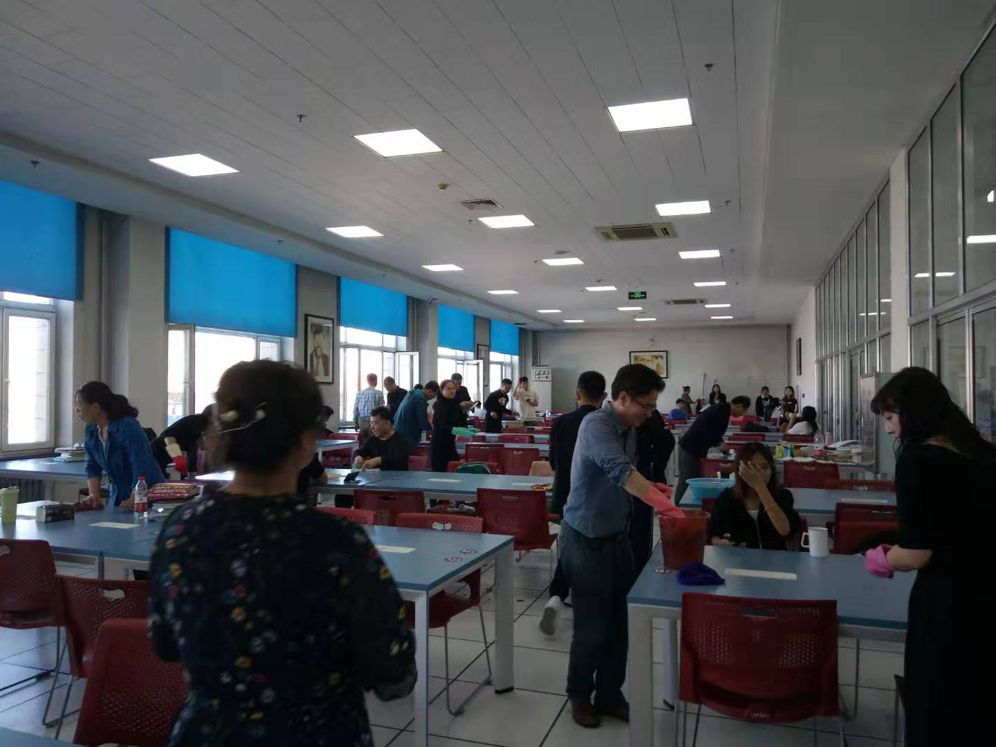 正值学校开展“不忘初心、牢记使命”主题教育之际,9月23日中午,图书馆与网络教育技术中心联合党总支组织全体党员开展义务劳动,用实际行动彰显党员的先锋模范作用。12:30左右,全体党员带着抹布和水盆准时来到北区图书馆五楼北自习区擦桌子。他们擦得非常认真细致,不放过任何一个死角。经过近1个小时的劳动,自习区的桌子整洁明亮、焕然一新。有的党员汗水湿透了衣背,通过自己的劳动让图书馆环境清新,让读者满意了,他们感觉非常欣慰。