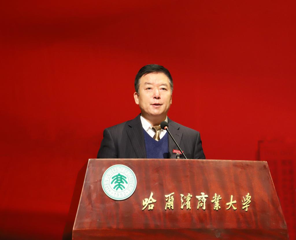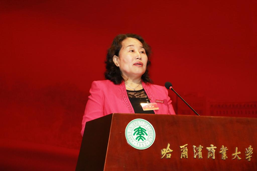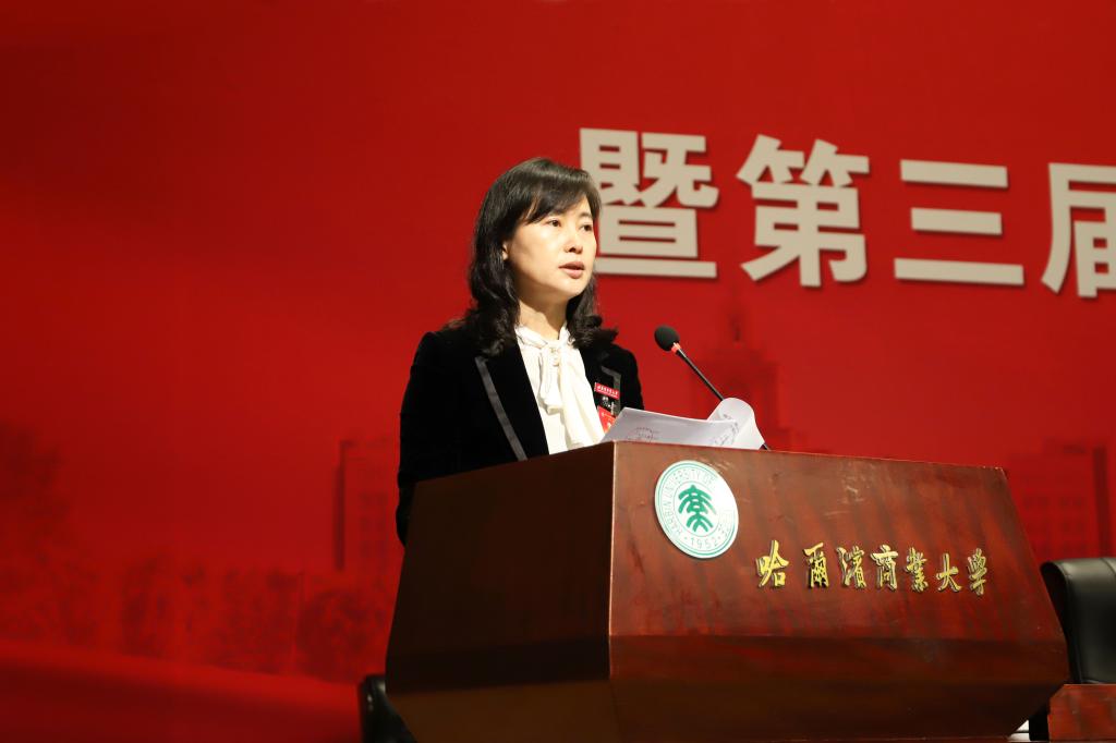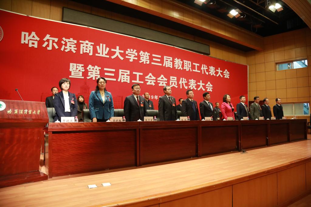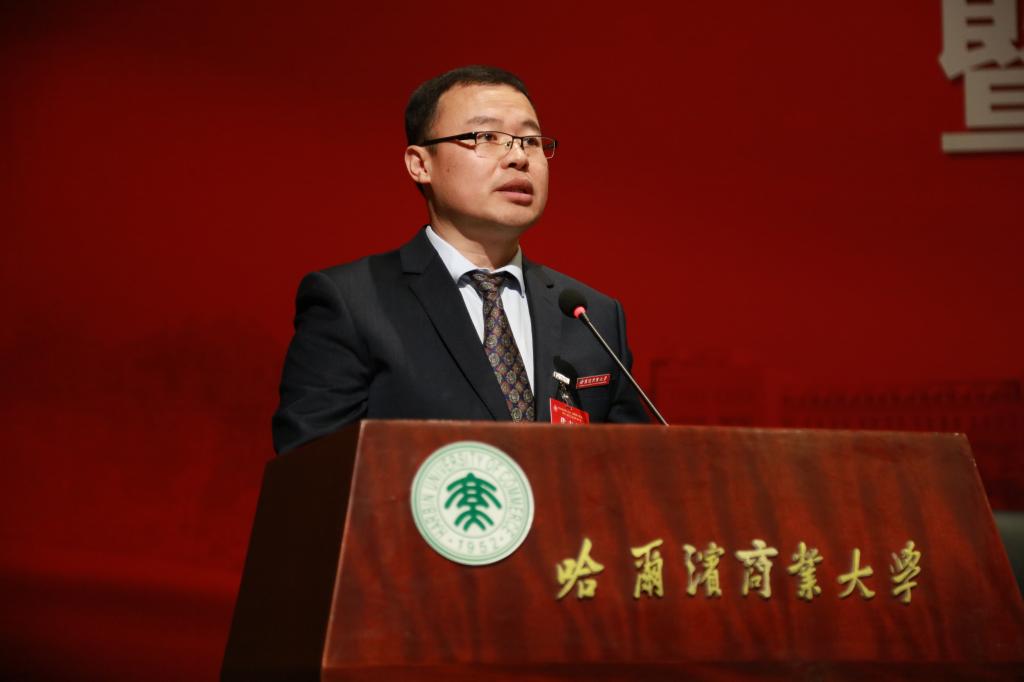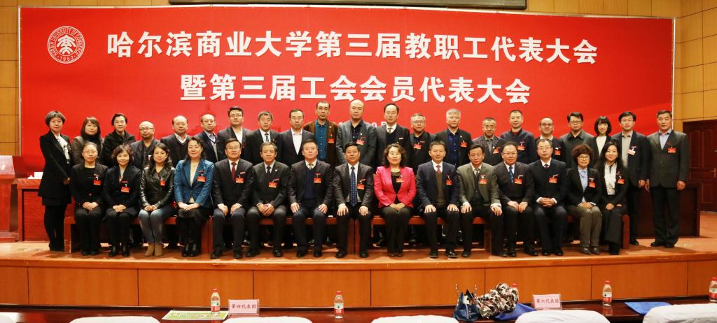 黑龙江省总工会副主席、党组成员于国君讲话。于国君首先代表省总工会、省教科文卫体工会向大会的召开表示热烈的祝贺!向全体代表、特邀代表、列席代表及全校教职工、专兼职工会干部和全体工会会员致以诚挚的问候和崇高的敬意。于国君表示,哈尔滨商业大学党委和行政十分重视和支持学校教代会和工会工作,采取有效措施不断强化学校民主政治建设。学校教代会制度更加健全,教代会四项职权得到了全面落实,二级教代会制度更加完善,校务信息公开更加深入,民主管理工作更加制度化、规范化、程序化和科学化。于国君希望即将选出的哈尔滨商业大学新一届工会委员会,以这次大会为新起点,开拓进取,勇于创新,全面履行工会职能,充分发挥工会组织优势,切实维护教职工合法权益,竭诚为教职工服务,最大限度调动广大教职工的主动性、积极性和创造性,为把学校建设成为教学水平高、科研实力强的多科性大学做出更大的贡献。于国君就今后加强政治理论学习、教代会和工会工作提出三点意见:一是认真学习宣传贯彻习近平总书记重要讲话精神和中国工会十七大精神;二是坚持完善教代会制度,持续开创学校民主管理和现代治理新格局;三是进一步发挥工会组织的作用,保持和增强政治性、先进性、群众性。