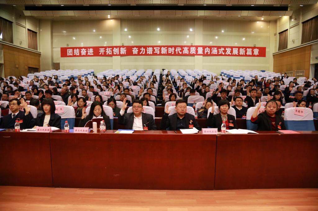 校党委书记孙先民致闭幕词。孙先民指出,本次大会是一次统一思想、凝聚力量的大会,是一次总结成绩、描绘蓝图、鼓舞干劲的大会,对学校的民主政治建设和改革发展,必将产生重大而深远的影响。孙先民强调,本次大会是全校上下深入学习贯彻习近平新时代中国特色社会主义思想,认真贯彻全国教育大会和全国本科教育工作会议精神,深入推进全面从严治党、不断强化学校内涵发展的一次重要会议。大会充分发扬民主,严格执行《高等学校教职工代表大会暂行条例》和《中华人民共和国工会法》规定,依法履行各项程序,代表们自始至终以饱满的政治热情和强烈的责任感,认真履行代表职责。通过会前调查研究、广泛征询意见建议,提交提案196份。会议期间,代表们认真参会,听取并审议通过了大会各项决议。各代表团还组织全体代表进行了分组座谈讨论。代表们从学校大局出发,围绕推动中心工作,共议学校发展大计,共商办学治校良策,对学校未来发展提出了许多建设性的意见和建议。真正体现了大家热爱学校、发展学校、风雨同舟的主人翁精神,也增进了参政议政的意识和能力。代表们一致认为,校长所作的学校工作报告,实事求是、客观全面地回顾和总结了过去的工作,深刻认识学校发展中面临的问题和挑战,谋划未来的工作目标思路清晰、任务明确,体现了全校师生勇于面对挑战、锐意开拓进取的雄心壮志。代表们对学校民主政治建设的长足进步感到欣慰,对工会工作感到满意,对学校发展更加坚定信心、充满希望。孙先民代表学校党委和领导班子就贯彻落实本次“双代会”精神,开拓学校发展的新局面,提出三点意见。一是抢抓机遇,推动内涵式发展,坚定建设高水平教学研究型大学的信心和决心;二是不忘初心,牢记使命,把学校的各项事业不断推向前进;三是以人为本,科学发展,不断推进学校的民主政治建设。