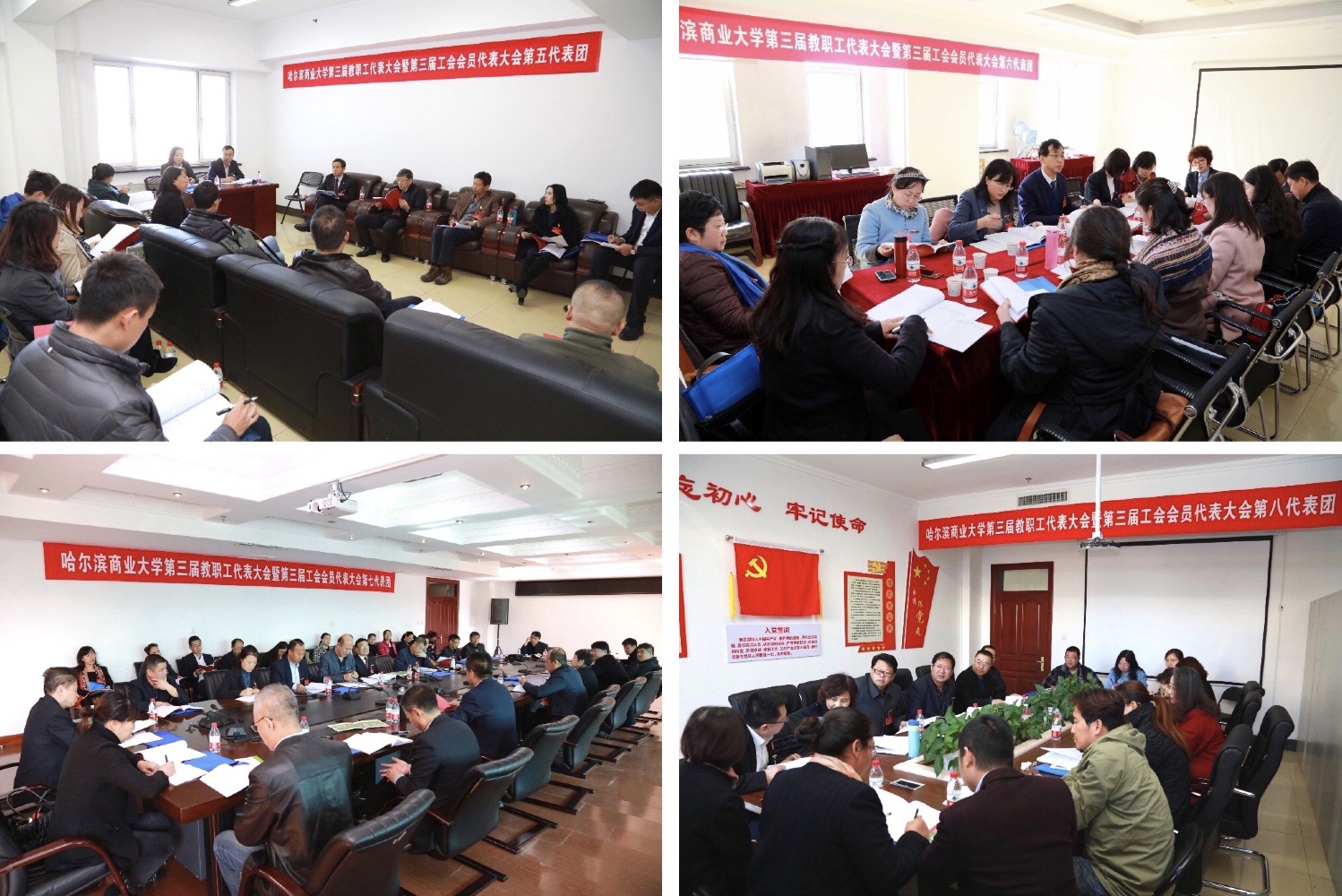 随后,各代表团审议、讨论了学校工作报告,工会工作报告,《哈尔滨商业大学教职工代表大会实施细则》《哈尔滨商业大学二级教职工代表大会实施细则》《哈尔滨商业大学北校区道路、景观命名方案》,学校2016-2018年度财务工作报告,学校2016-2018年度工会经费收支情况报告,学校第三届教职工代表大会暨第三届工会会员代表大会提案审查报告,酝酿第三届教代会执委会、第三届工会委员会及第三届工会经费审查委员会候选人名单。