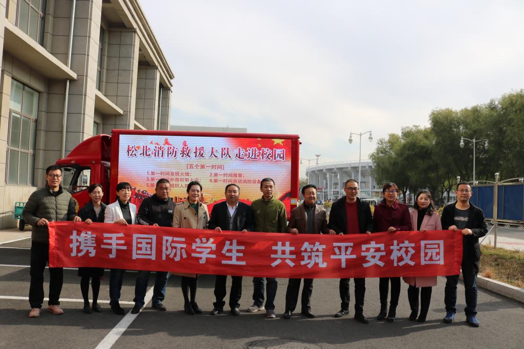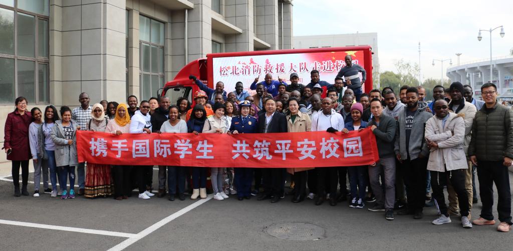 10月18日上午9时,国际教育学院、保卫处为2019级留学生新生开展了“携手国际学生,共筑平安校园”法律法规安全教育会及消防演习。哈尔滨市公安局出入境管理局段云峰、金云龙、韩梅警官,哈尔滨市公安局松北分局政治处郝帅警官、中源派出所曲凯警官、松北区应急救援大队参谋徐薇警官来校讲座。国际教育学院、保卫处相关人员以及来自34个国家的近百名硕士留学生参加了本次活动。
