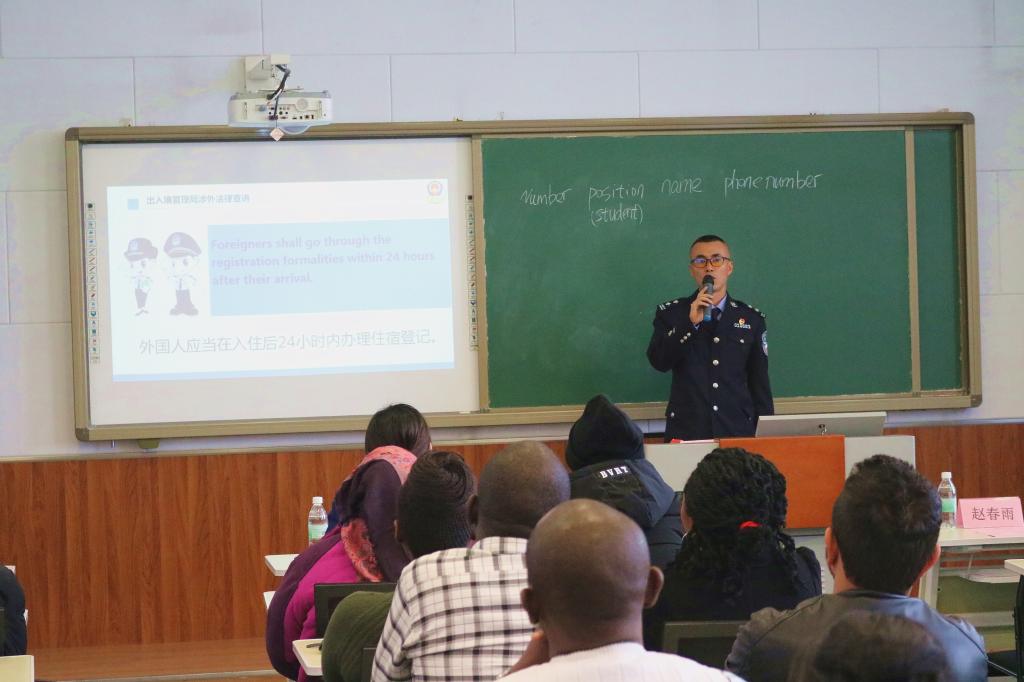 在安全教育会上,哈尔滨市公安局出入境管理局金云龙警官对《中华人民共和国外国人入境出境管理条例》进行了详细解读,增进了留学生对中国涉外法律法规的认识,这为他们在华平安生活起到了积极的指导作用。