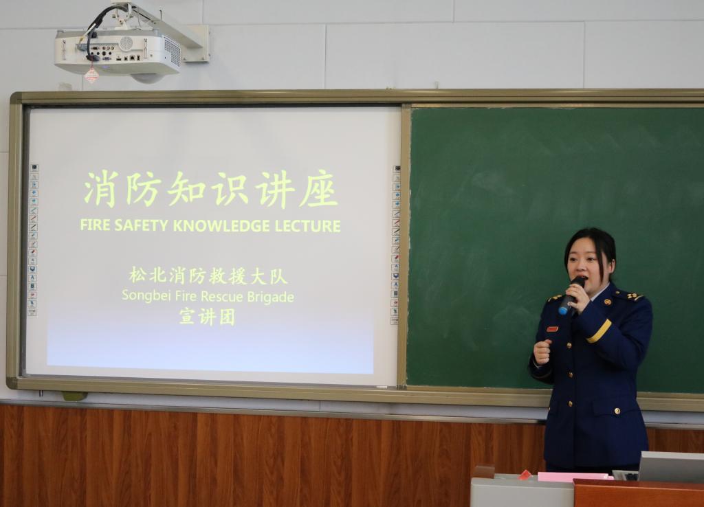 哈尔滨市松北区应急救援大队参谋徐薇警官形象生动地讲解了日常防火常识,如何使用灭火器和消防栓,火灾发生时紧急疏散注意事项,如何在最短时间内自我保护、逃生自救。