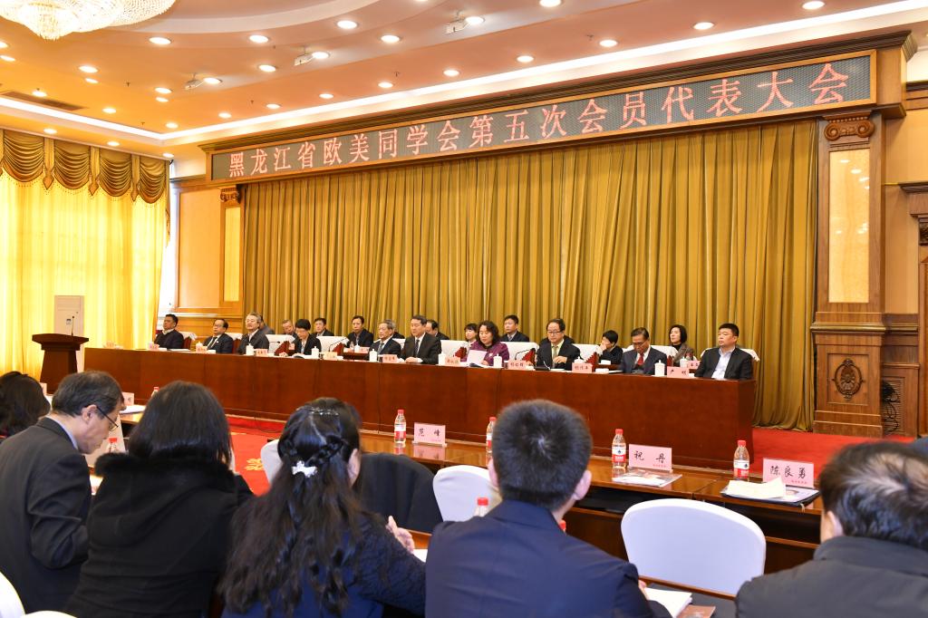 大会选举产生了省欧美同学会第五届理事会;选举中国工程院院士、哈尔滨医科大学原校长杨宝峰同志为第五届理事会会长,选举郑秋鹛校长等24名同志为副会长。