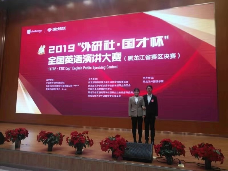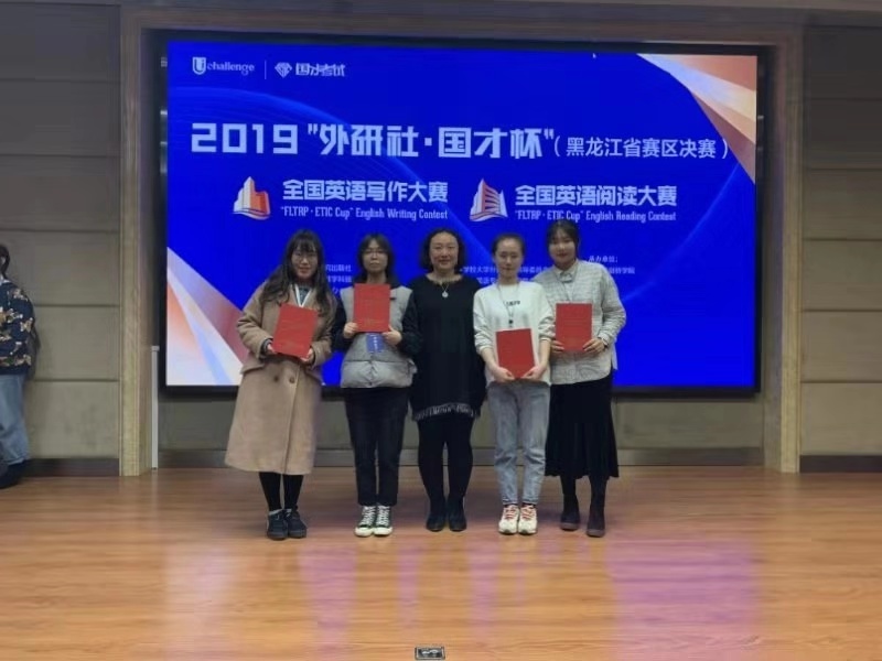 在2019“外研社·国才杯”全国英语写作/阅读大赛(黑龙江赛区)决赛中,来自全省38所高校的165名参赛选手齐聚一堂,我校学生表现优异,由张琳老师指导的外语学院学生李依依同学以及由马雪松老师指导的鄢瑞同学分别获得写作和阅读比赛的一等奖,王抒飞老师指导的袁香同学获得写作比赛二等奖,马雪松老师指导的于可心同学获得阅读比赛三等奖。