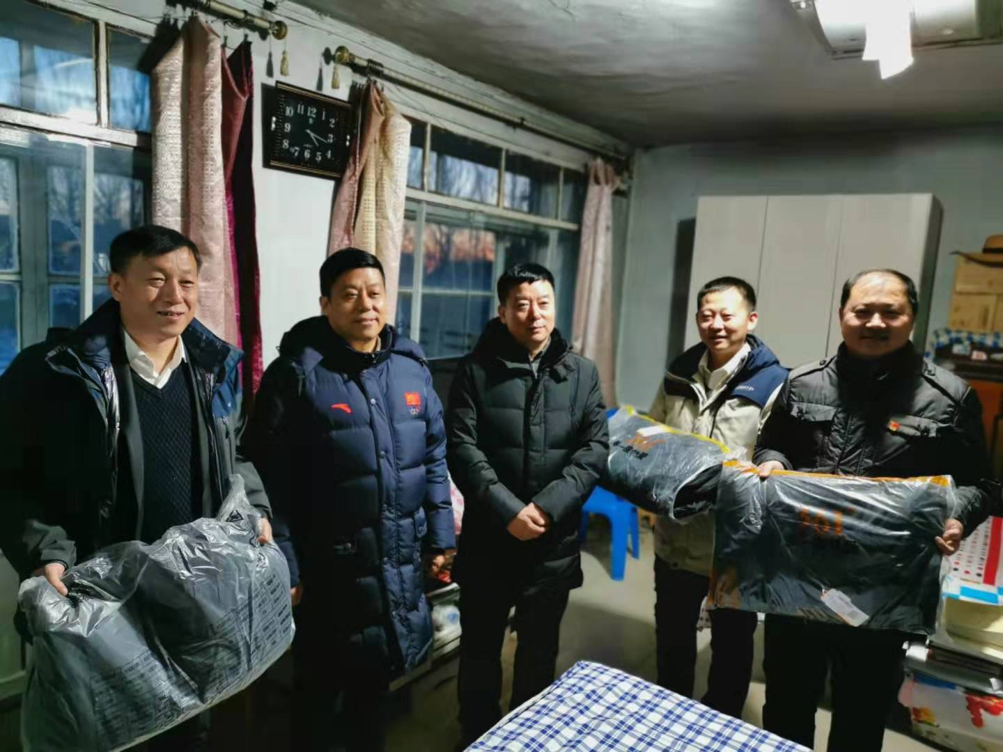 孙先民一行来到驻村工作队驻地看望扶贫工作队员,为他们带去御寒衣物和生活用品,叮嘱他们要保重身体,注意冬季取暖安全。
