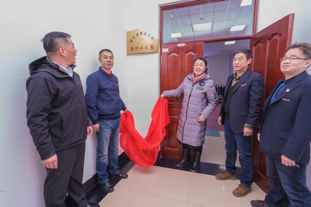 在教职工读书协会成立仪式结束后,李晓梅为设立在A区图书馆的教职工之家揭牌并参观教职工之家活动室。在校工会的大力支持下,图书馆分工会近期对设立在A区图书馆的教职工之家活动室进行了修缮改造,进行了地胶修补、更新台球设施、粉刷墙壁并制作背景墙,张贴宣传画,同时添置了一批健身器材。修缮改造后的教职工之家活动室焕然一新,将以崭新的面貌迎接全校教职工前来健身运动。