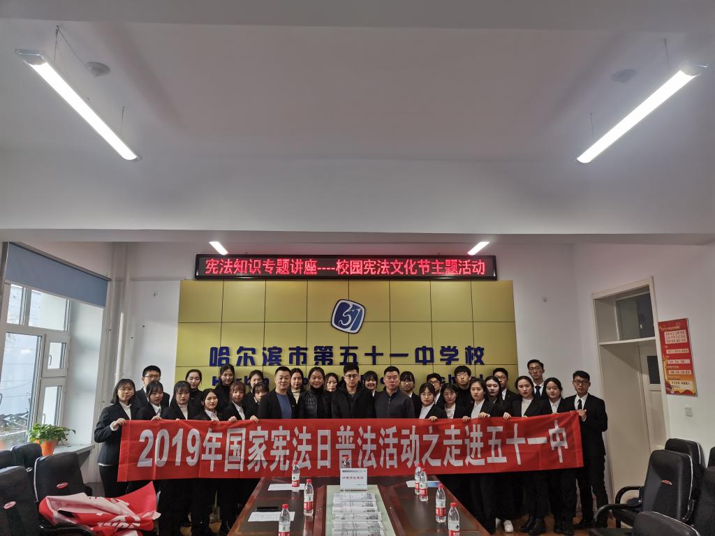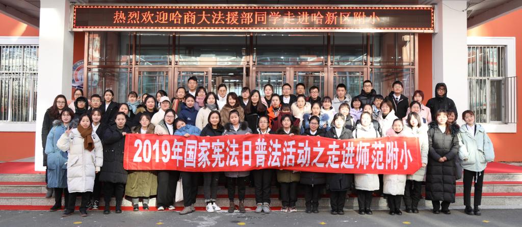 为深入学习贯彻习近平新时代中国特色社会主义思想,贯彻落实党的十九大和十九届四中全会精神,充分发挥普法依法治理工作在推进国家治理体系和治理能力现代化中的基础性作用,积极响应中宣部、司法部、全国普法办关于开展“宪法宣传周”活动要求,12月4日,在第六个国家宪法日来临之际,黑龙江省法律援助中心哈尔滨商业大学学生工作部(以下简称“法援工作部”)陆续走进哈尔滨新区师范附属小学和哈尔滨第五十一中学开展普法宣传活动。