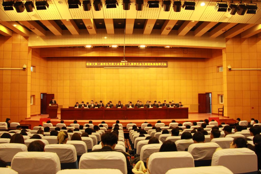 在进行正式议程之前,受校学生会换届选举委员会委托,校团委副书记许蕾介绍了第十九届学生会主席团换届报名、资格审查及初选工作情况。会上,全体代表审议通过了学生会主席团选举办法(草案)、新一届学生会主席团成员候选人名单及监票人、计票人名单,通过无记名投票的方式,选举产生了新一届学生会主席团成员。会议最后,审议通过了《聘请哈尔滨商业大学第十九届学生会秘书长的决定》。