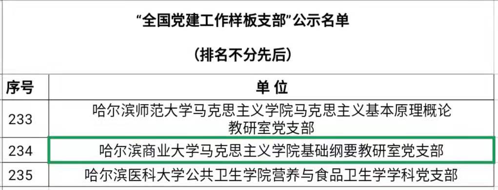 根据《教育部办公厅关于开展第二批新时代高校党建示范创建和质量创优工作的通知》(教思政厅函〔2019〕15号)精神,经资格审查、专家推荐、教育部党的建设和全面从严治党工作领导小组成员单位集中审议,我校马克思主义学院基础纲要教研室党支部入选第二批“全国党建工作样板支部”。