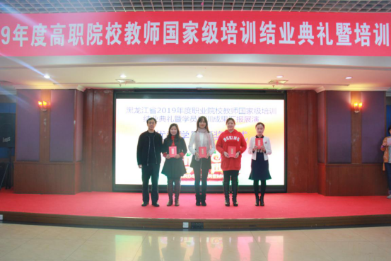 12月15日,黑龙江省2019年度高职院校教师国家级培训结业典礼暨培训成果汇报展演在商大酒店举行。我校会计学院院长张劲松、旅游烹饪学院院长石长波、商务学院院长王彪、职业技术教育学院院长刘兴革及全体参训学员参加结业典礼。