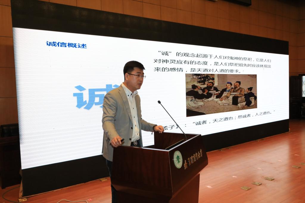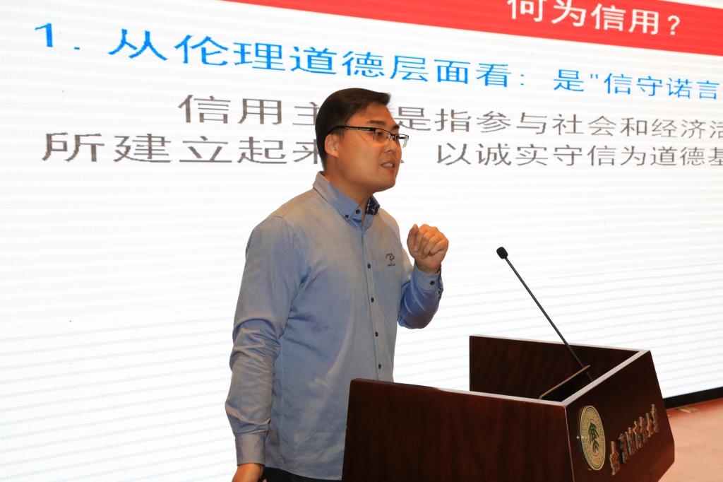 会后,首期“诚信大讲堂”开讲,中国人民银行哈尔滨中心支行征信管理处主任科员徐龙、新华社中国经济信息社新华信用分析师刘宇分别以《信青春·守未来》《诚信是校园温暖的力量》为题作专题讲座。