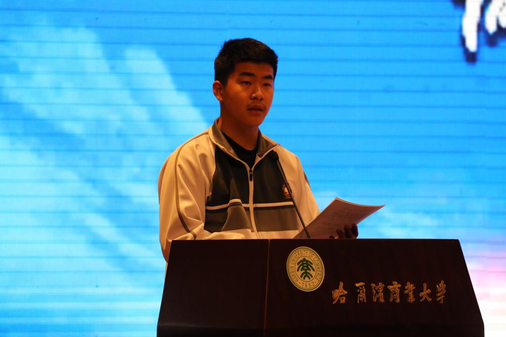 哈尔滨第十中学学生代表赵宏岩宣读诚信倡议书