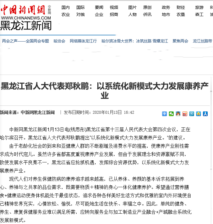 省人大代表郑秋鹛提出“以系统化新模式大力发展康养产业”的建议
