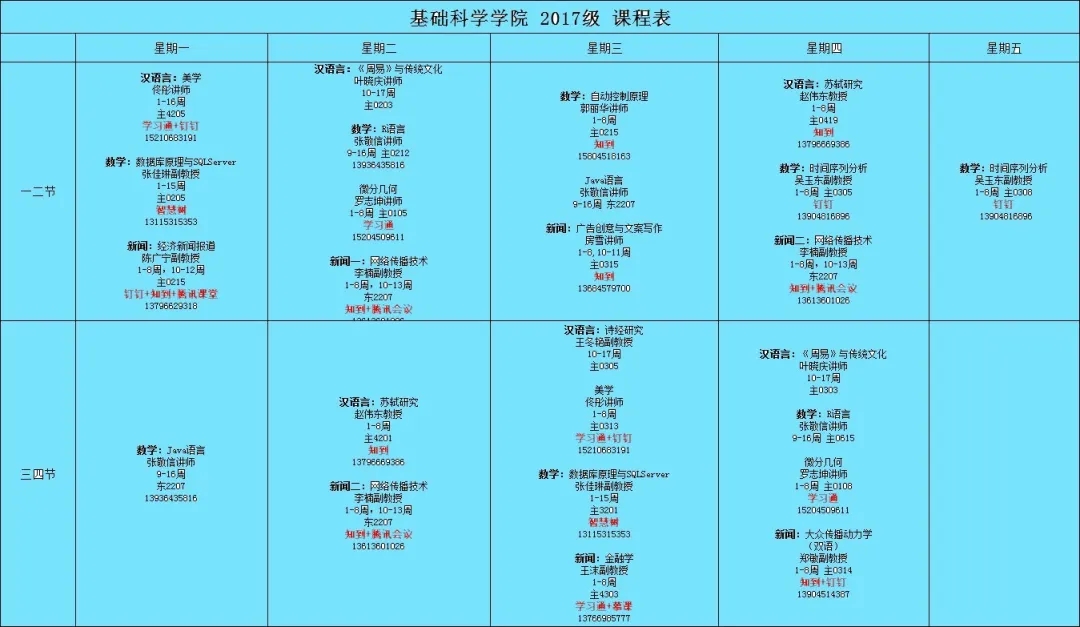 基础科学学院成立在线教学专项工作组,以教研室为单位实行网格化管理,对个别操作有困难的老师,进行一对一指导,保障教学秩序,提升效能。辅导员老师对全体学生开展线上教学动员,对参加线上教学存在困难的学生进行摸排,专门制作学生网络课程表。