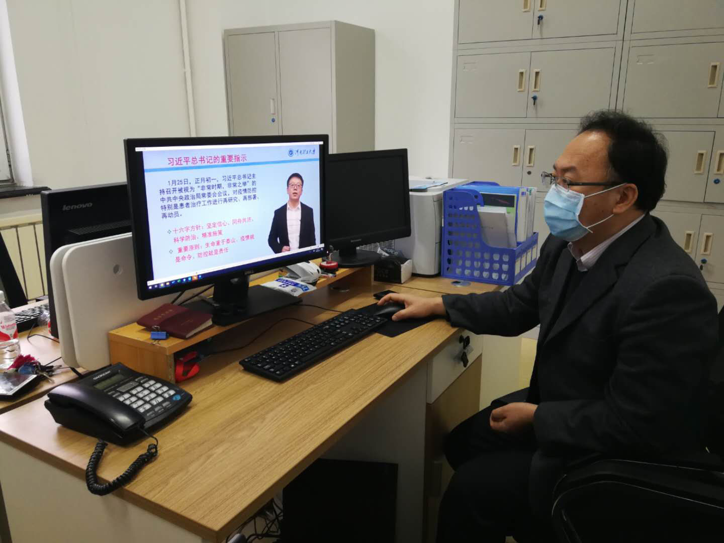 学校领导高度重视线上教学,纷纷下沉课堂。学院领导也分别到各自学院教师线上进行听课。开学第一天,党委书记孙先民、校长郑秋鹛、副校长张林一行来到教务处一站式服务中心办公室,现场登陆在线班级和直播课堂,关注任课教师的教学效果和学生的学习状态。学校党委高度重视思政课这一重要育人主渠道,校领导先后多次与马克思主义学院对接,主动了解网络教学集体备课情况,提出“提高政治站位,注重学生关切,采取多种手段,确保教学质量”的总要求。校领导每天都下沉到班级在线听课,关注学生学习效果与评价反馈。