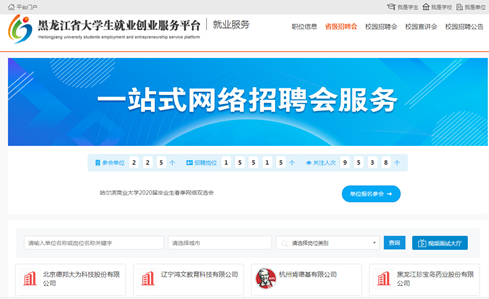 我校2020届毕业生春季网络招聘会于3月9日顺利启动,此次招聘会将历时两周。本次网络招聘会吸引了中国能源建设集团、中铁城建集团、冰山技术服务(大连)有限公司、黑龙江省完达山乳业股份有限公司等225家用人单位参加,提供就业岗位15515个,目前,招聘会关注人次达9538人。