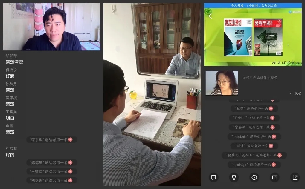 开学以来,教师教学状态好,学生学习热情高。全体教师为保证教学质量,均能充分利用居家环境和现有设备开展线上教学,教师们严肃认真程度和工作情境设计令人感动。
