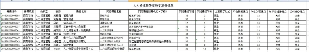 全体任课教师充分利用学校提供的线上教学平台,根据既定教学大纲、教材、课表、授课对象、授课计划,结合线上教学平台资源的可利用性,制定线上线下混合教学授课计划和教学大纲,对于有线上教学能力、能实现教学效果、确保教学质量的任课教师,选择网上教学平台和教学资源,建立共享课和翻转课,同时结合课程特点和授课对象特征选择应急辅助线上教学预案。