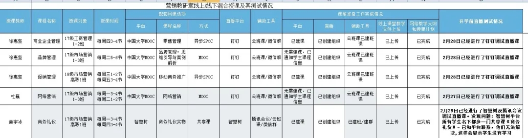各教研根据本学期授课班群及网络平台使用情况制定多个教学预案