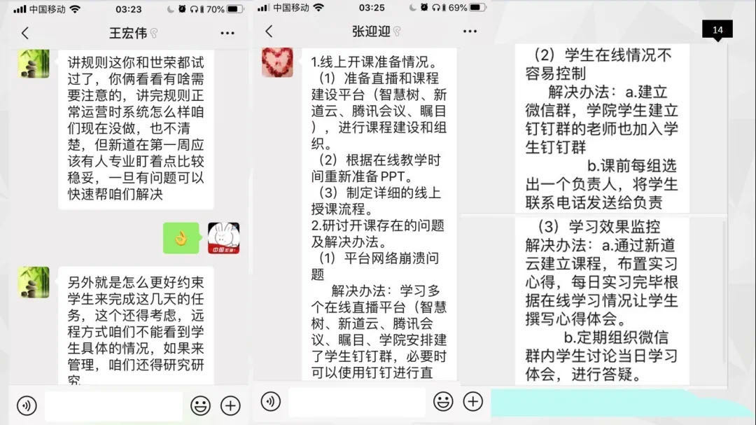 学院具体要求教师做到:线上教学和线下教学质量标准不变,线上教学过程中做好师生间交流,线下做好教师之间交流和学习,开课后及时总结经验,快速反映问题,及时沟通、及时关注、及时解决。
