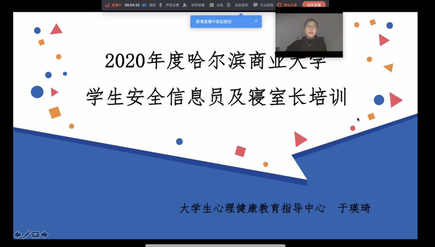 于瑛琦讲解了学生安全信息员及寝室长在疫情期间的工作内容与职责以及在特殊时期的“为与不为”,并鼓励大家宣传心理健康知识,正确区分心理“正常”与“异常”,识别心理危机信号进行有效转介,积极做好自身防护,要与学校共同努力做好大学生心理健康知识宣传与教育工作。
