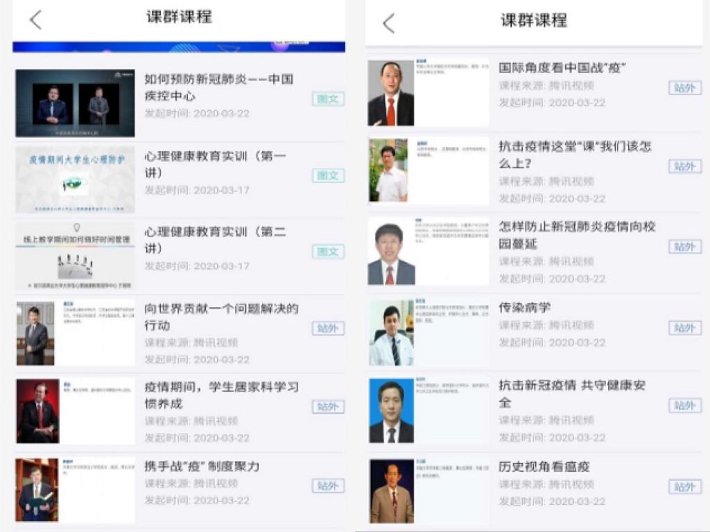在线学习观看教育培训视频,得到学生积极响应和参与。培训选取的视频来源于专业机构、诸多名校学者以及我校大学生心理健康教育指导中心,内容包含疫情期间的防护知识、经济形势、国际形势分析、爱国主义教育、心理健康引导等。通过培训学习,让学生深入学习掌握了防控知识,进一步深化了防疫思想认识,切实保障了学生的身心健康。