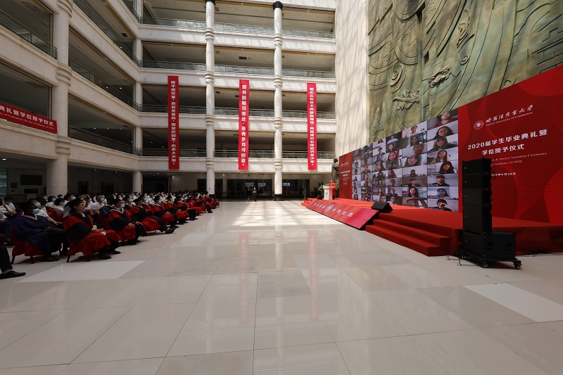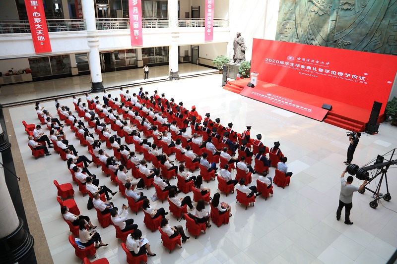 哈尔滨商业大学2020届学生毕业典礼暨学位授予仪式在哈尔滨商业大学官方微博、哔哩哔哩、钉钉、哈尔滨商业大学毕业典礼直播平台线上观看量达到10.83万余人次。