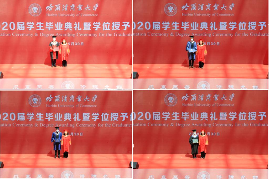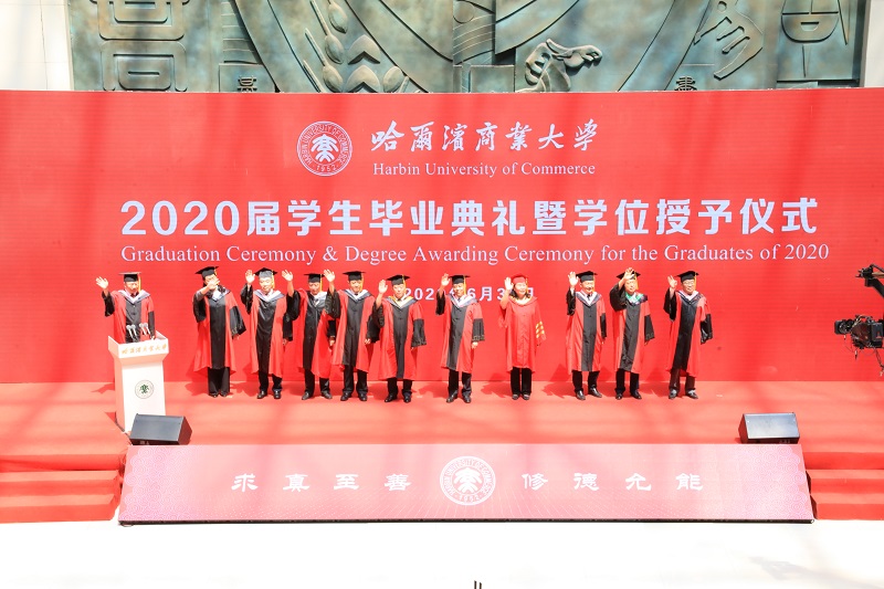 全体师生合唱校歌《诚信歌》,伴随着慷慨激昂的歌声,校领导挥手与毕业生温情道别,哈尔滨商业大学2020届学生毕业典礼暨学位授予仪式圆满落幕。