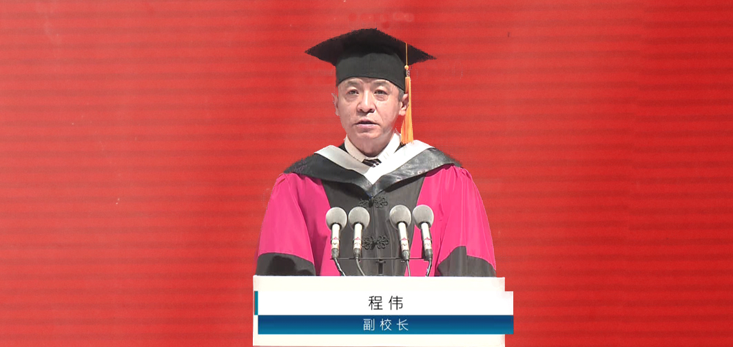 校学位评定委员会副主席、副校长程伟教授宣读博士、硕士、学士学位授予文件。校学位评定委员会委员、校党委副书记刘吉昌教授宣读优秀毕业生表彰文件。全场以热烈的掌声向毕业生们表示祝贺。