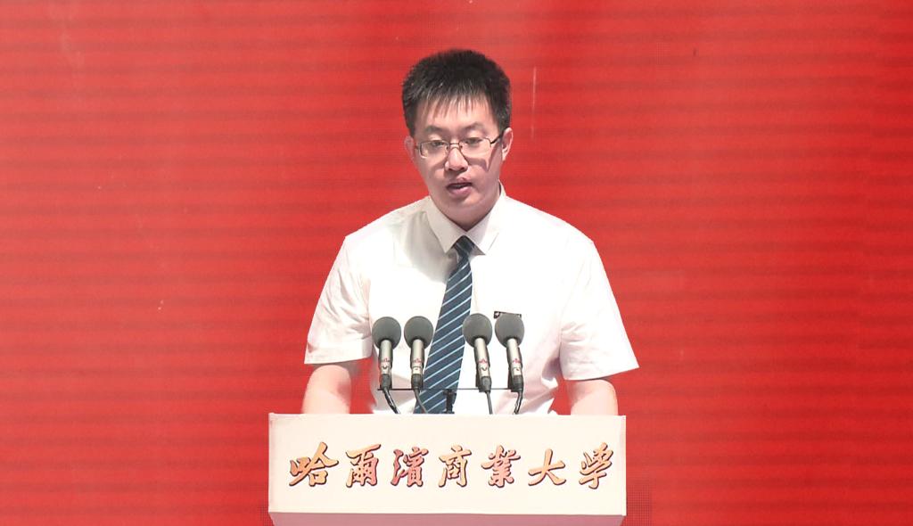 在校生代表、2018级行政管理专业硕士研究生王伟骅为学长学姐们送上诚挚的祝福,并寄语他们今后无论身处何方,无论道路有多么坎坷,无论生活有多么艰辛,一定要不忘初心,努力坚持,奋勇前进,全体商大人的心永远连在一起。