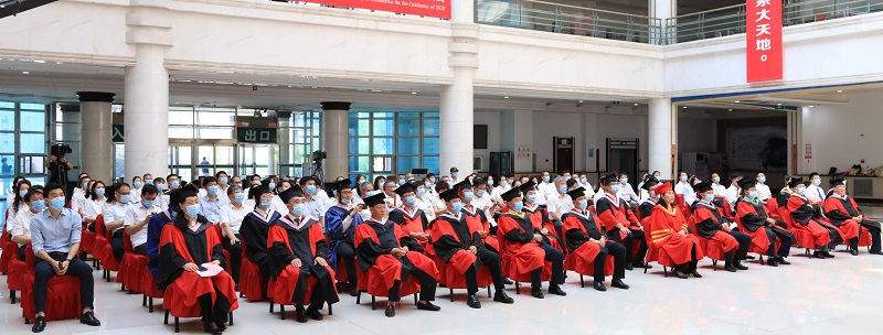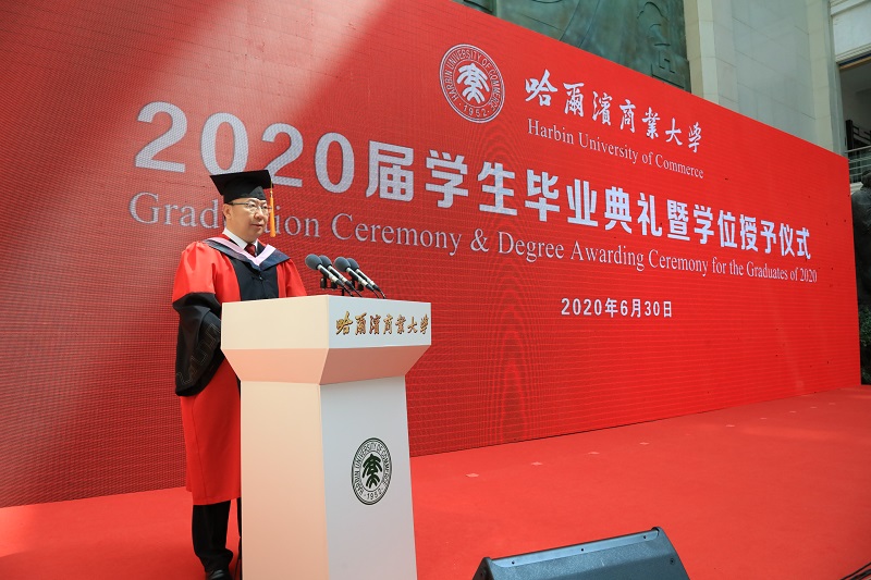 6月30日上午,我校在北校区图书馆隆重举行2020届学生毕业典礼暨学位授予仪式。校党委书记孙先民,校长郑秋鹛,校党委副书记杨殿军、刘吉昌,副校长程伟,纪委书记孟凡龙,副校长于树彬、张志军、姜国峰、张林,校工会主席李晓梅出席仪式, 校学位评定委员会委员,各学院书记、院长,党政管理教辅部门负责人,全体毕业班辅导员,2020届毕业生代表参加仪式。2020届毕业生及家属、留学生、在校生、学校教职员工通过云直播平台观看毕业典礼。毕业典礼由校学位评定委员会副主席、副校长张林教授主持。